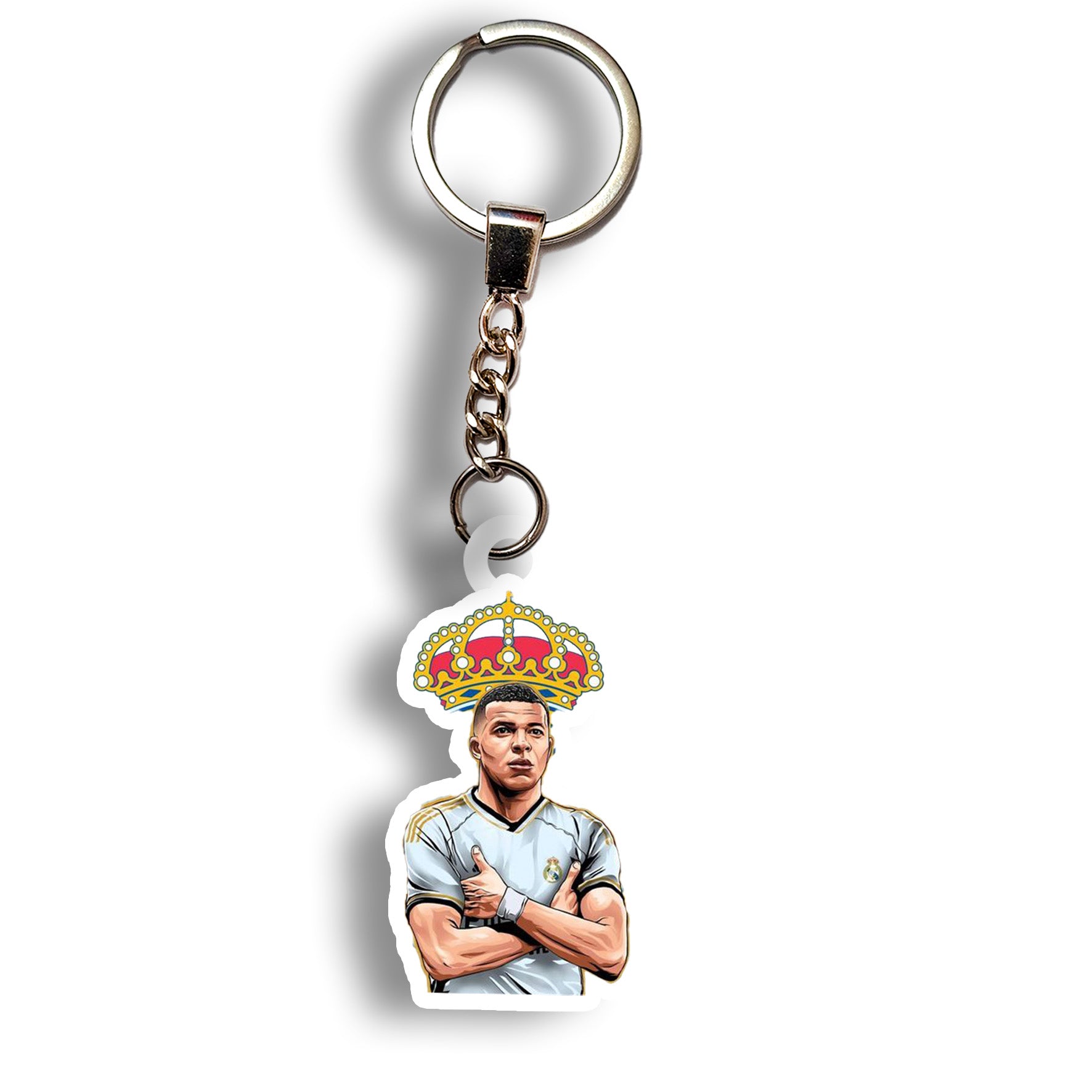 This durable acrylic keychain features Kylian Mbappé in a bold double-sided design—perfect for fans who admire the French superstar’s unstoppable style and lightning pace.