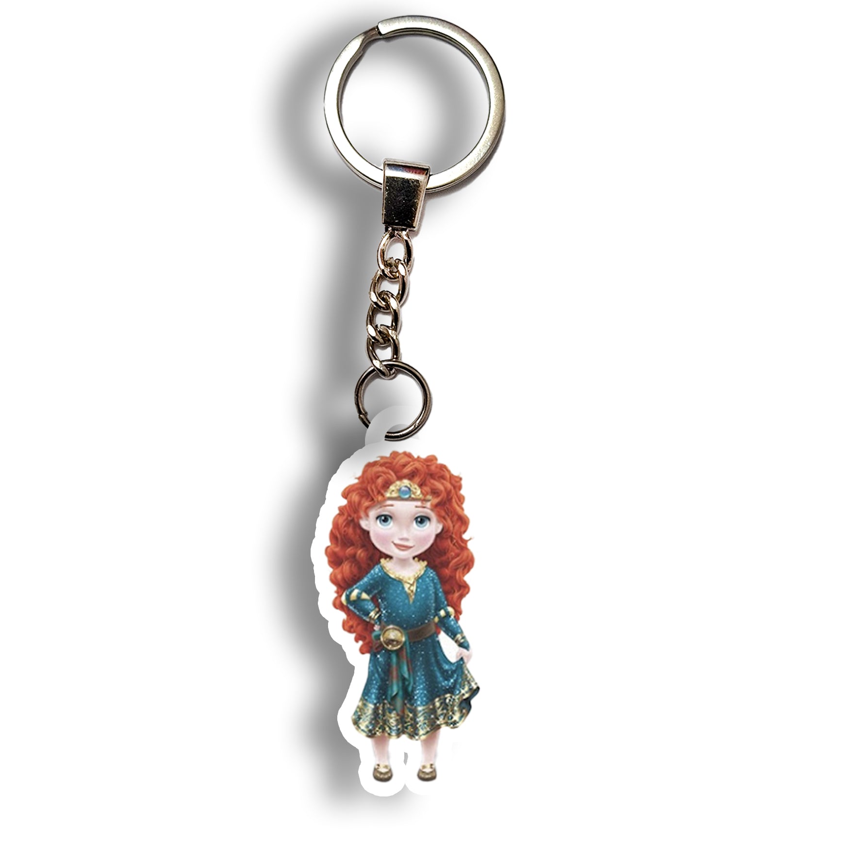 This Merida keychain features the bold princess with her iconic curls and bow.