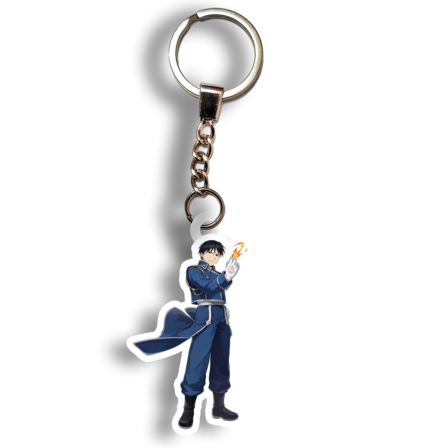 Bring the fire with this Roy Mustang keychain, showing off the cool and confident colonel in his military uniform.