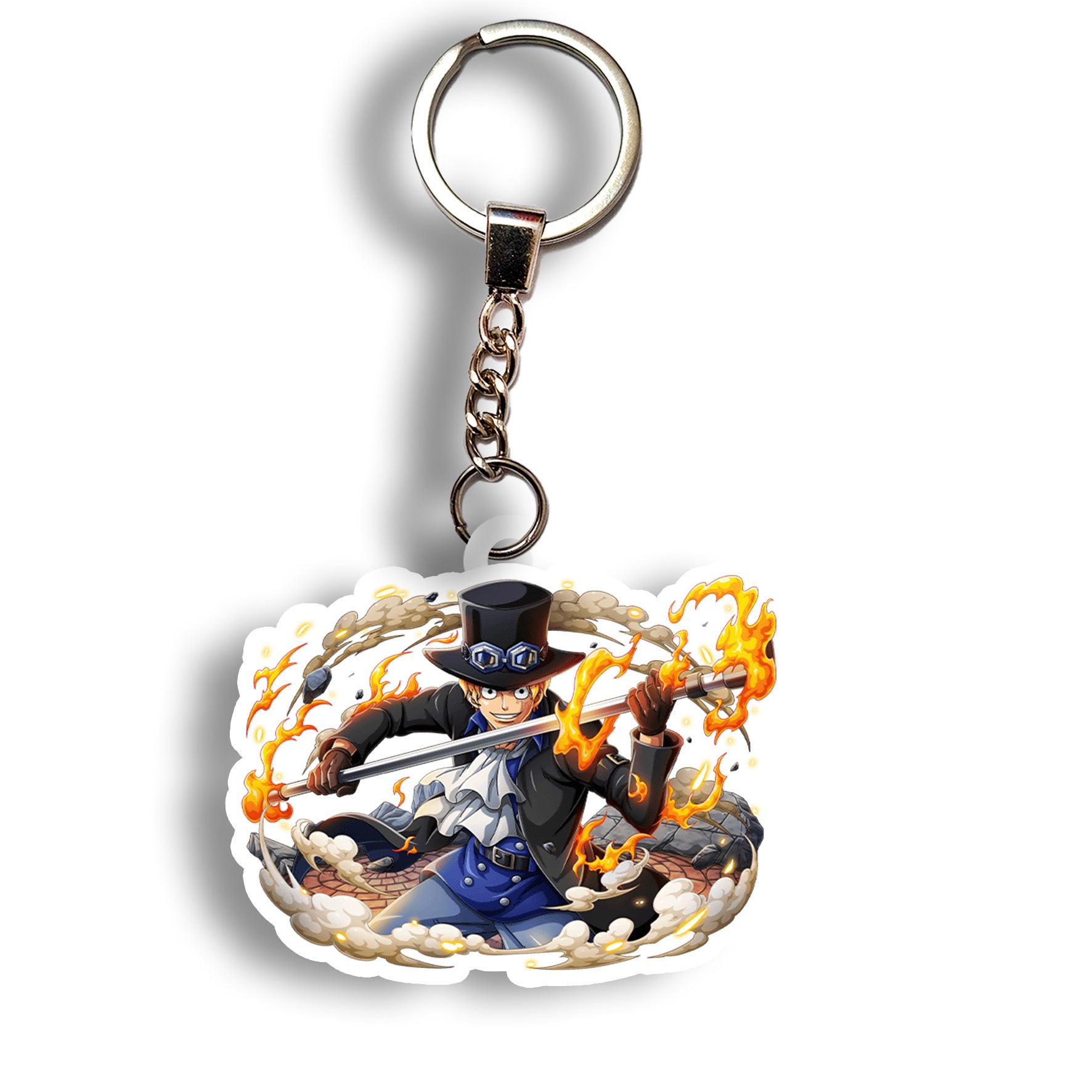 The Sabo keychain features the noble brother of Luffy, wielding the fire of Ace and the will of justice.